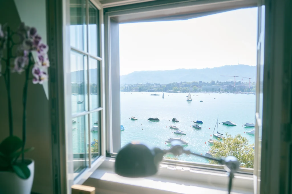 Serenitas, een van onze drie exclusieve penthouses aan de rustieve oevers van het Meer van Zürich, biedt privacy, comfort en adembenemende uitzichten op het meer en de omliggende bergen. Elk detail is ontworpen om u te helpen veilig, ondersteund en vernieuwd te voelen.